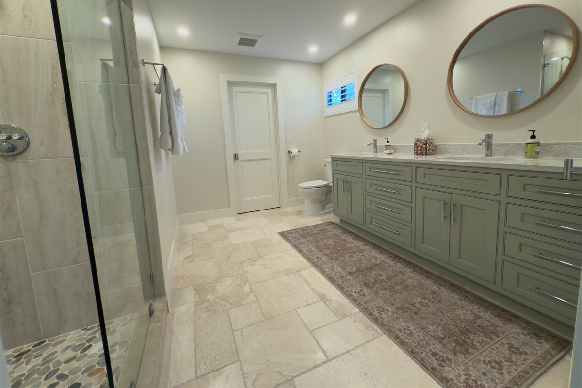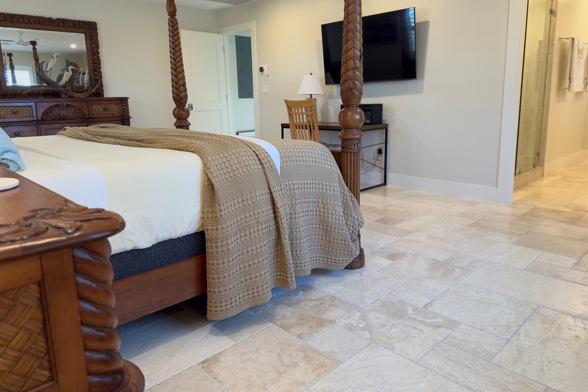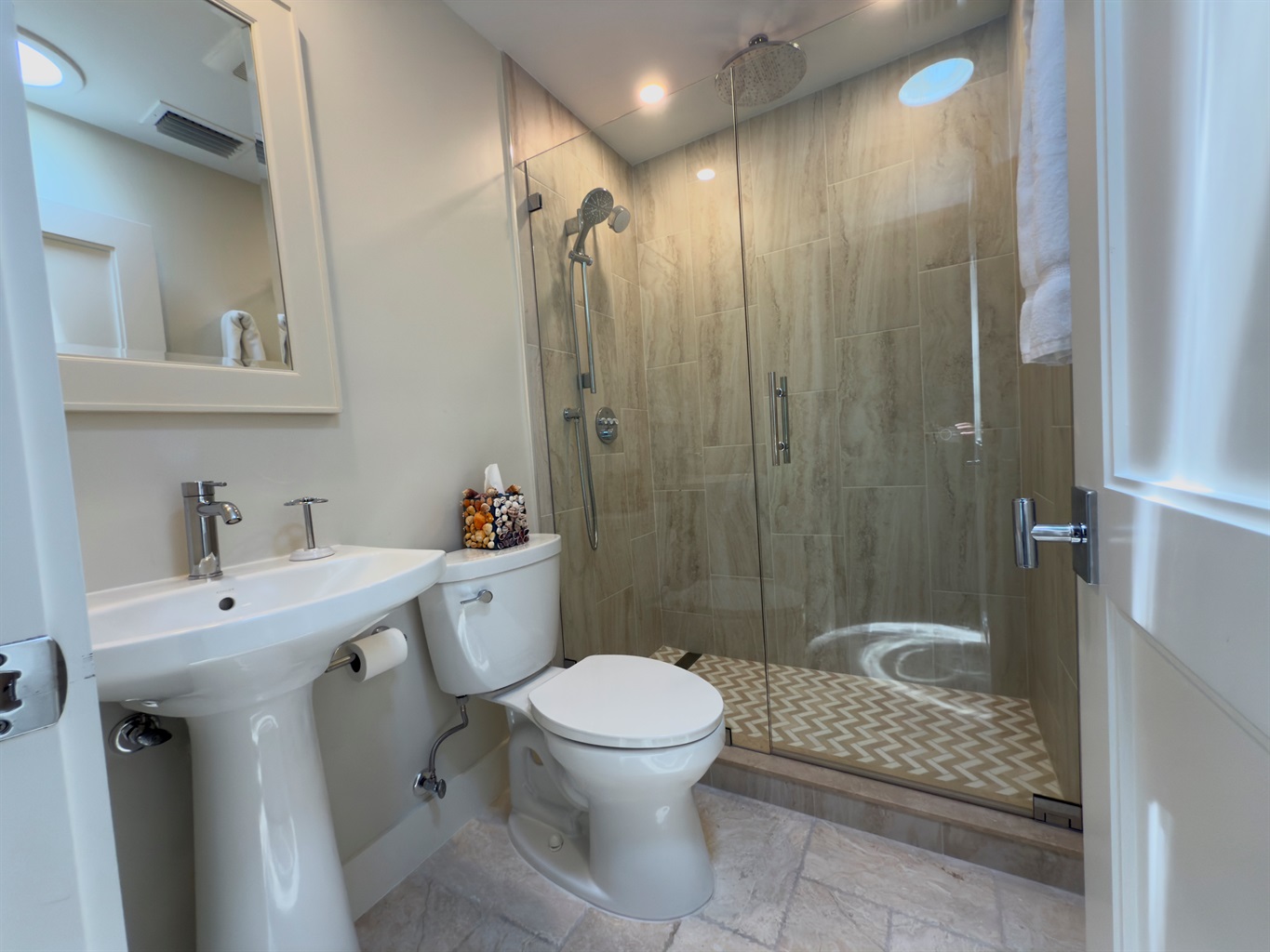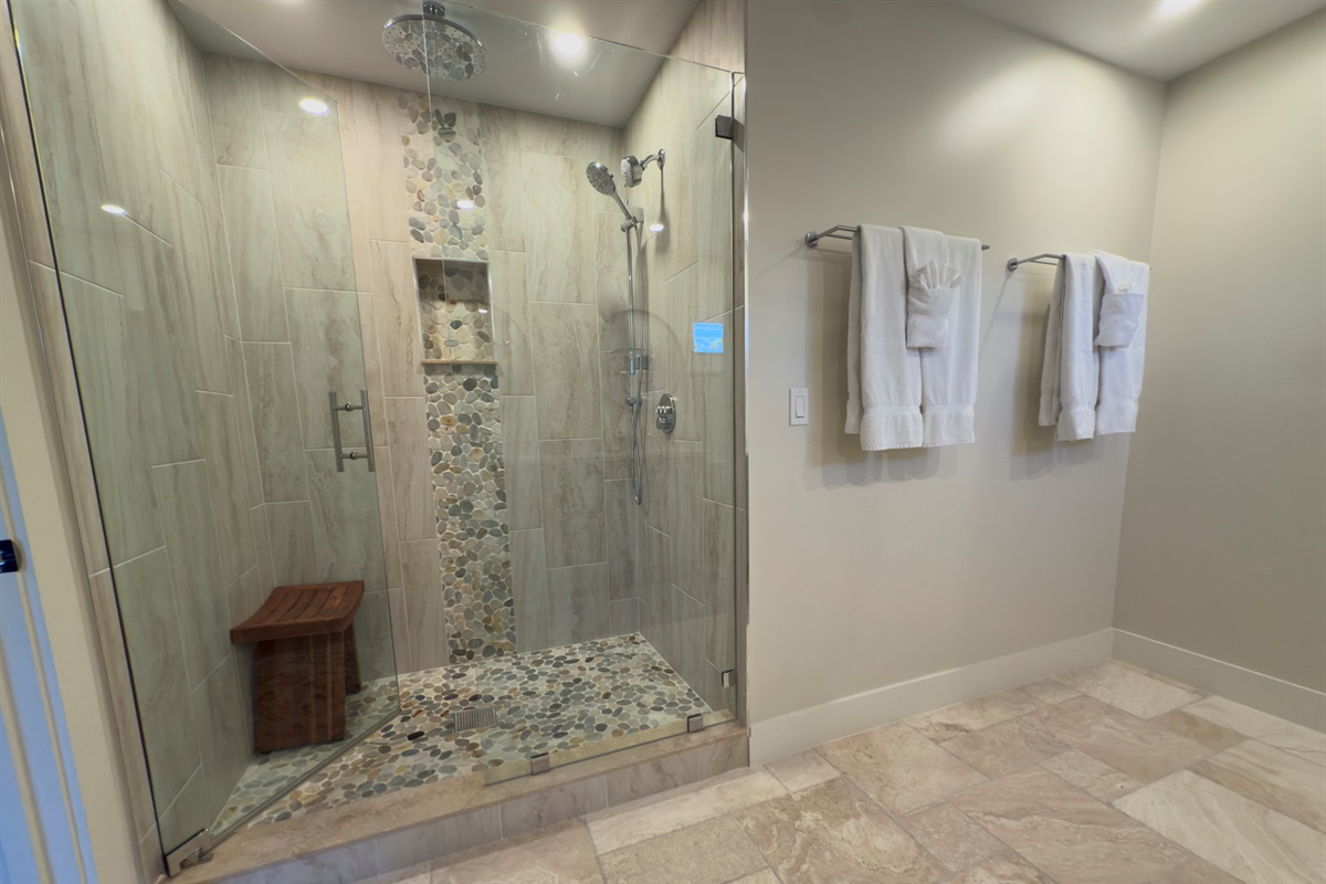 There are 2 large master bedrooms with walk-in closets and en-suite bathrooms and a guest bedroom with bunk beds and a queen bed. A third full bathroom is just outside the guest bedroom. All bedrooms complete with large flat screen TVs and cable. There is Sonos whole house audio inside and outside by the pool and outdoor dining area. The office can be closed off with a triple sliding pocket door and has an electric fireplace that also will heat the space if desired.